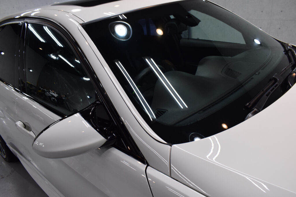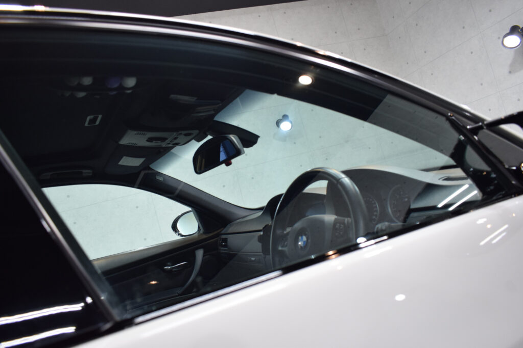 今回はBMW・M3のフロントガラス・フロントドアガラス・サンルーフガラスへ透明遮熱フィルムを施工させていただきました。