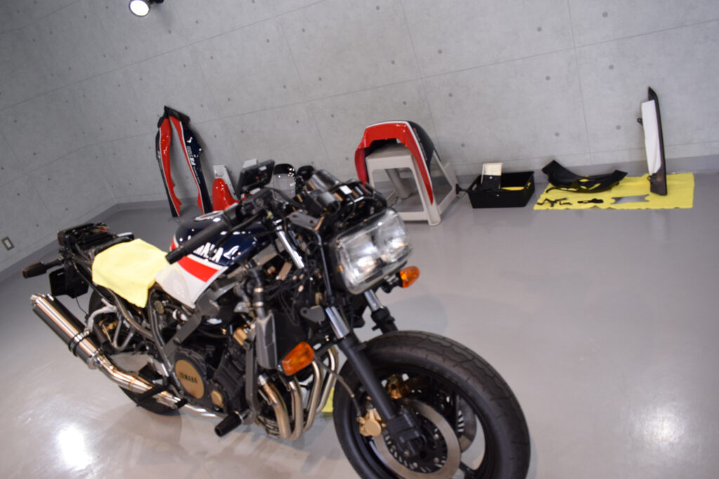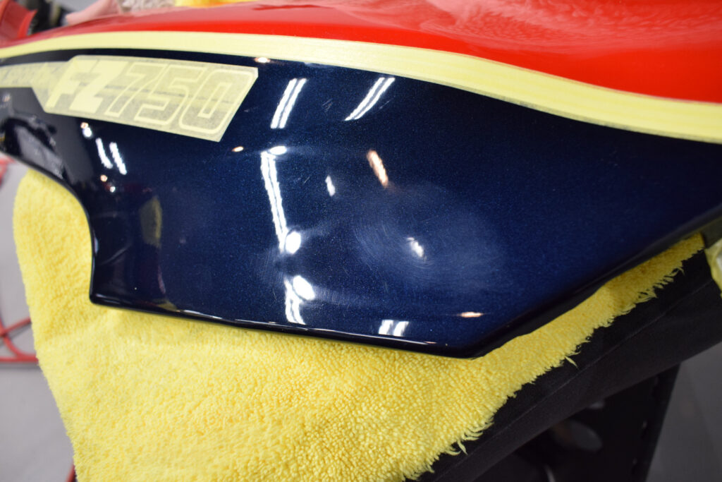 しかしながらタンクやカウル類には小傷などが目立ちますので、丁寧に下地処理し最大限美しい状態に仕上げていきます。