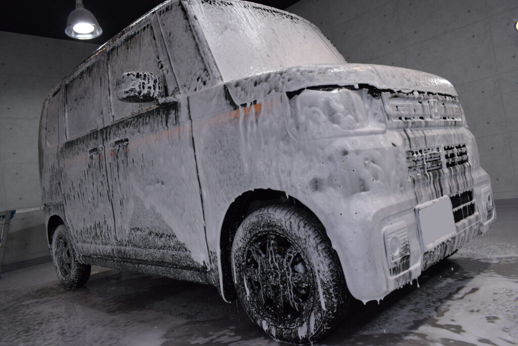 さて、今回は新車への施工となりますが、新車であってもボディ表面には通常の洗車だけでは落としきれない汚れが付着しています。